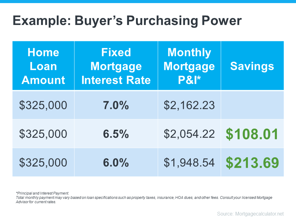 Even a 0.5% change can have a big impact on your monthly payment. And since rates have been moving between 6% and 7% for a while now, you can see how it impacts your purchasing power as rates go down.